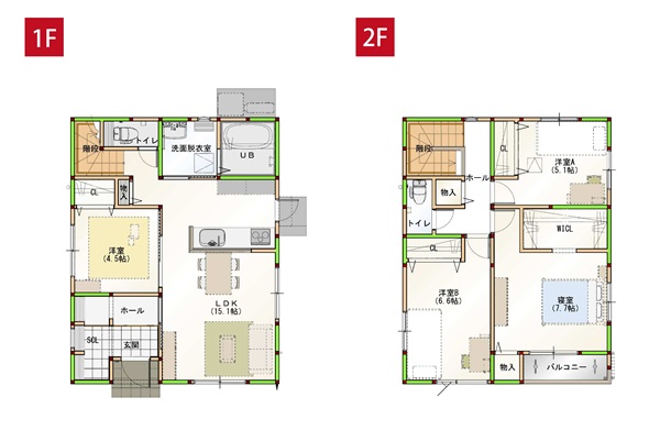 1F)15LDK・4.5洋・洗面・浴室・トイレ